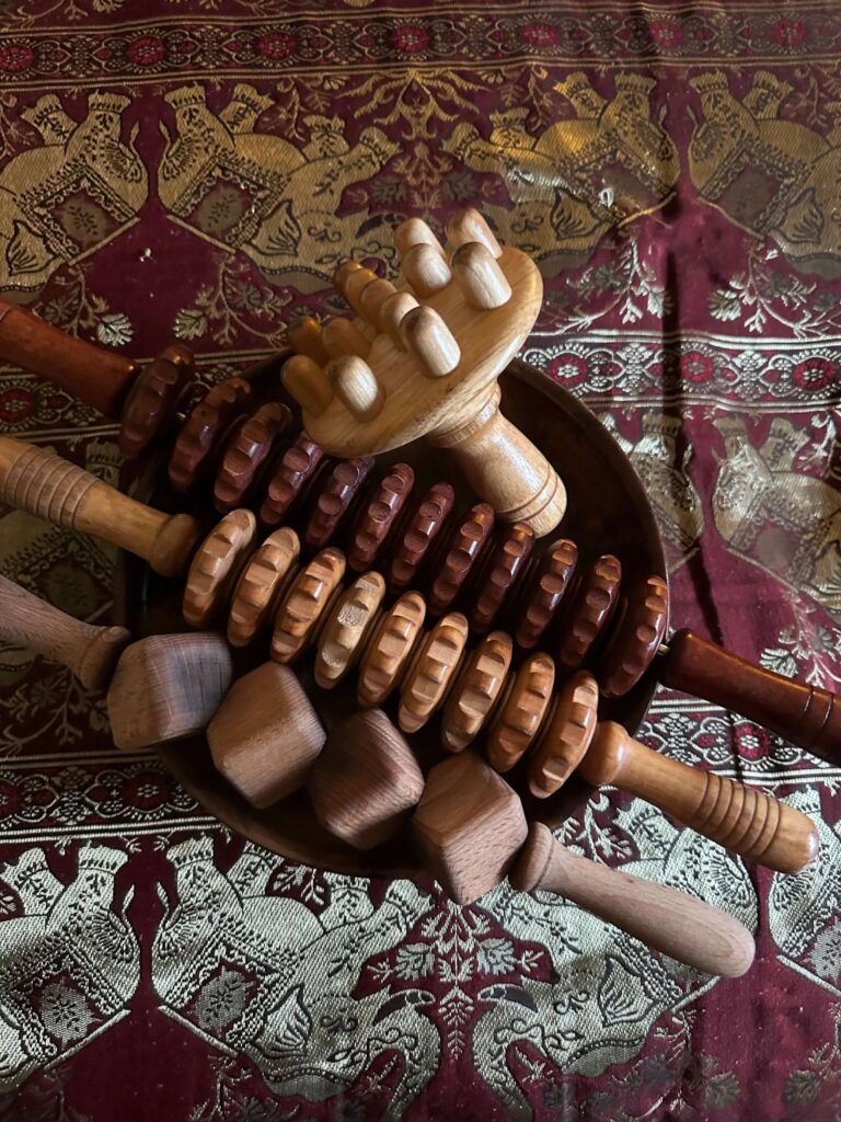 Die Maderomassage ist eine spezielle Massagetechnik aus Südamerika, bei der mit anatomisch geformten Holzwalzen und -rollen gearbeitet wird. Ziel ist es, das Bindegewebe zu stimulieren, den Lymphfluss zu aktivieren und gezielt Problemzonen zu behandeln.